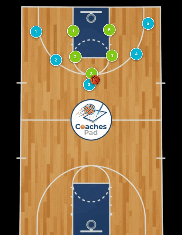 - Apply a 3/4 High Denial when the ball is above the three-point line. You're cutting off the passing lane at an angle — not fully fronting, but definitely not giving a clean look either.